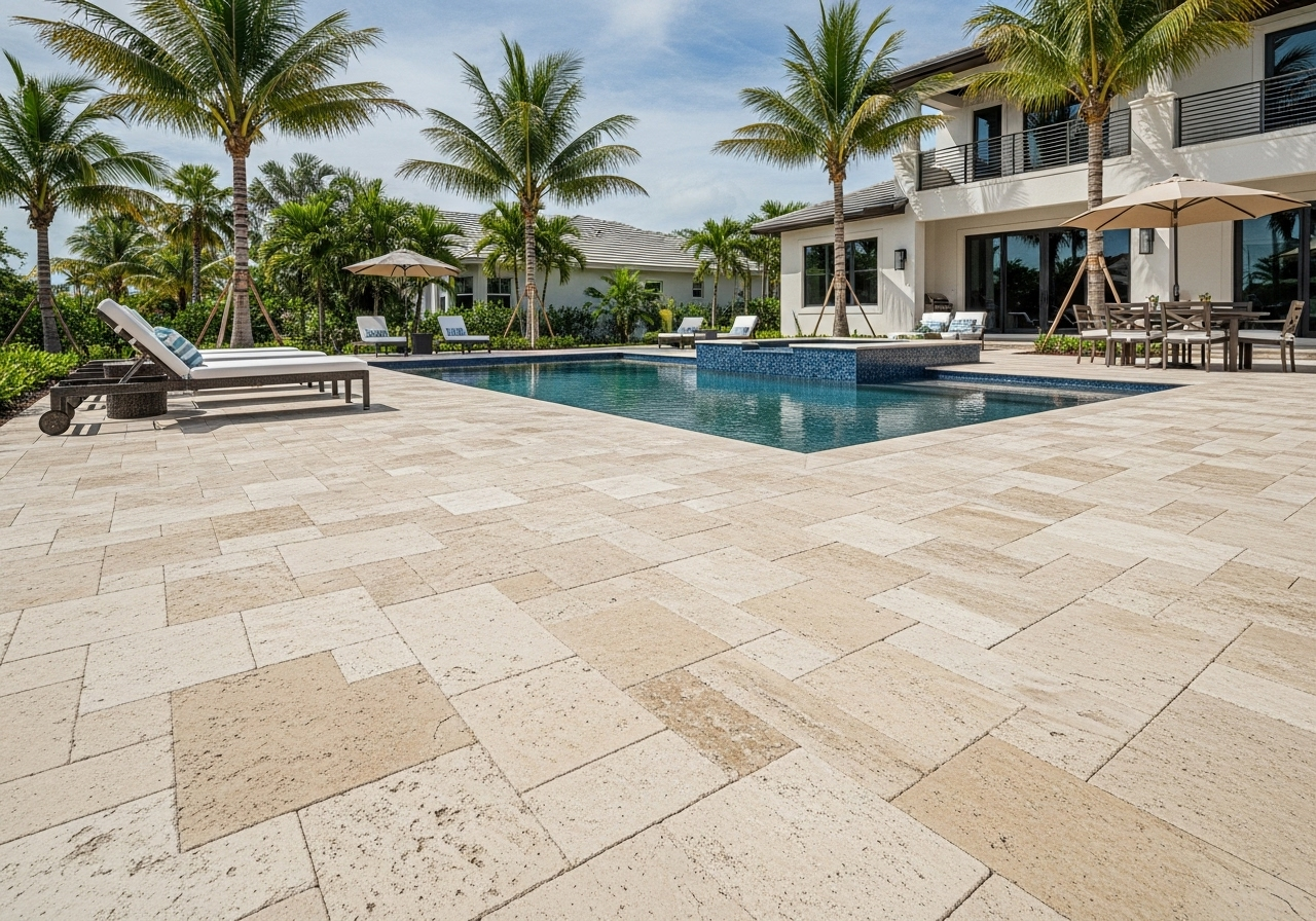 | Travertine | Elegant, natural look; cool under the Florida sun; ideal around pools and patios with excellent slip resistance. | Porosity means more maintenance required; lighter shades show dirt and stains more easily; needs regular sealing. |